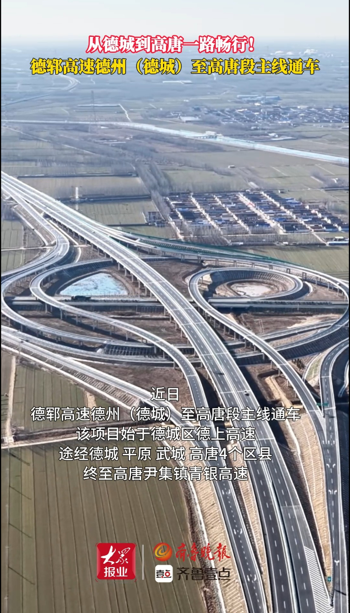 果然视频|从德城到高唐一路畅行! 德郓高速段主线通车