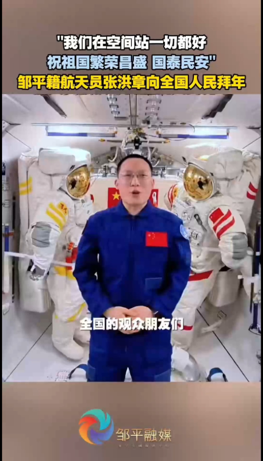 请收好来自太空的新春祝福,邹平籍航天员张洪章在空间站向全国人民拜年!