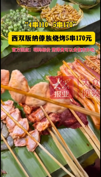 西双版纳傣族烧烤5串170元?官方回应:明码标价