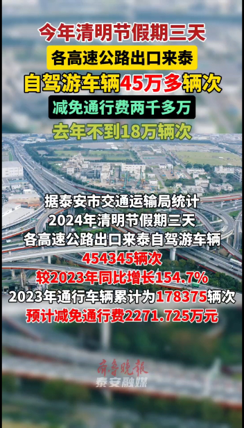 清明节假期三天,各高速公路出口来泰自驾游车辆45万多辆次