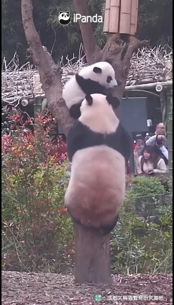 大熊猫幼崽不想回家被妈妈揪耳朵了