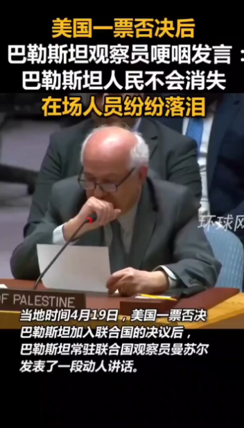 巴勒斯坦观察员在联合国哽咽发言,在场人员纷纷落泪