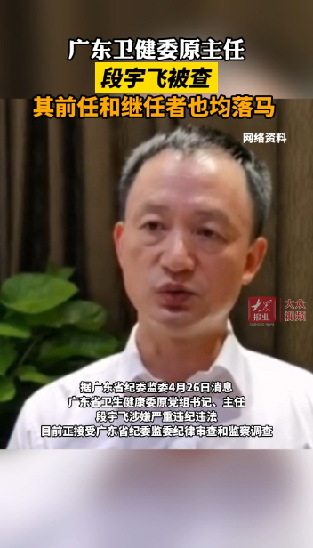 广东卫健委原主任段宇飞被查 其前任和继任者也均落马