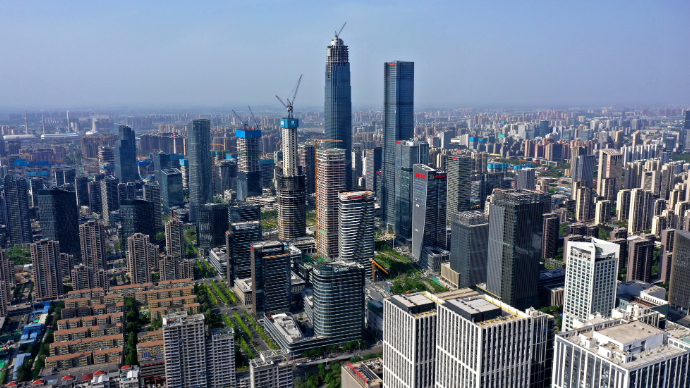 果然视频|航拍济南CBD新貌,楼群拔地而起“五指山”巍然耸立