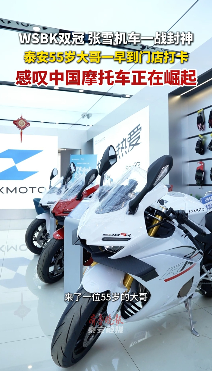 果然视频丨WSBK双冠 张雪机车一战封神,泰安55岁大哥一早到门店打卡,感叹中国摩托车正在崛起