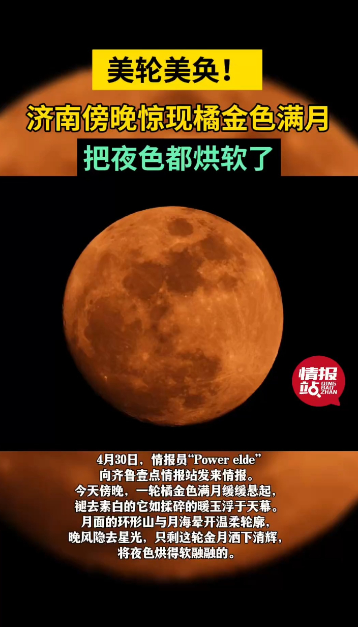 情报站|美轮美奂!济南傍晚惊现橘金色满月,把夜色都烘软了