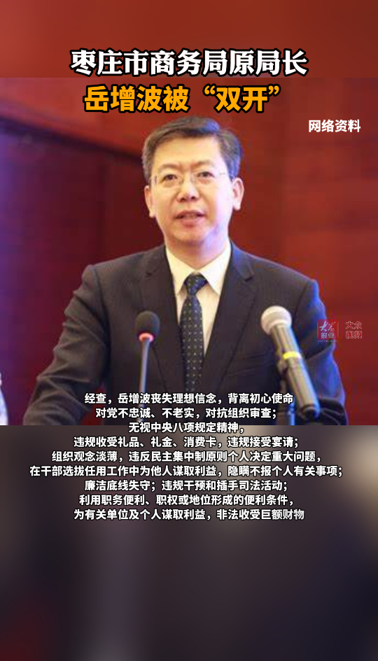 枣庄市商务局原局长岳增波被“双开”