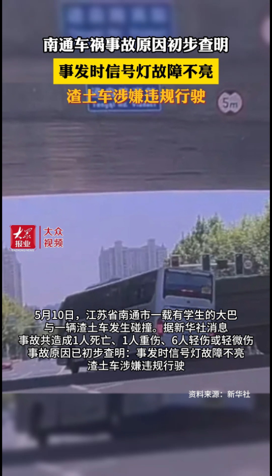 南通车祸事故原因初步查明:事发时信号灯故障不亮,渣土车涉嫌违规行驶