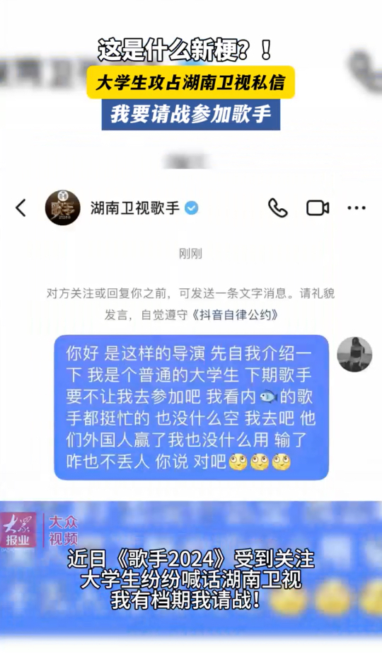 这是什么新梗?! 大学生攻占湖南卫视私信 我要请战参加歌手