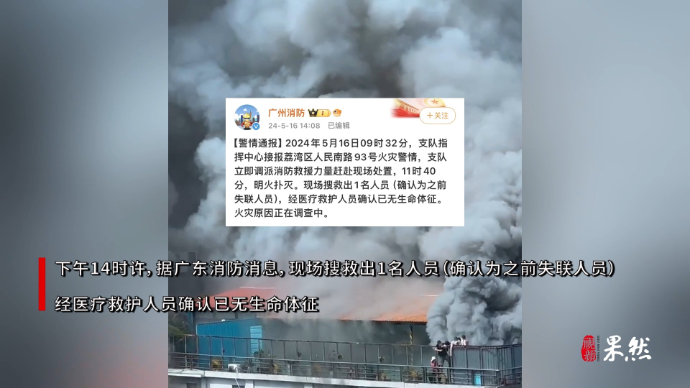 果然视频|广州批发市场火灾现场失联人员已找到,已无生命体征