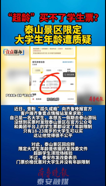 壹点帮办|“超龄”买不了学生票?泰山景区限定大学生年龄遭质疑