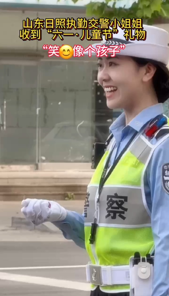 超开心!日照这位执勤的交警小姐姐收到了“六一礼物”