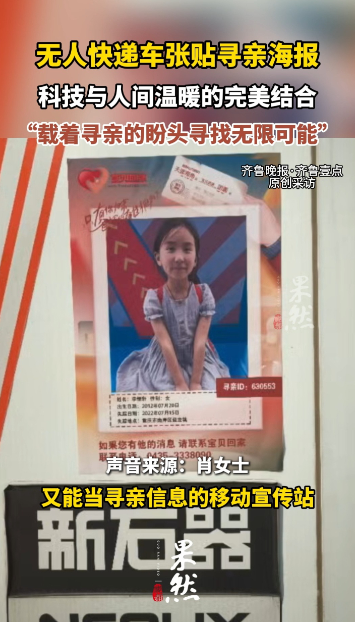 果然视频|张贴寻亲海报的无人快递车:载着寻亲盼头寻找无限可能
