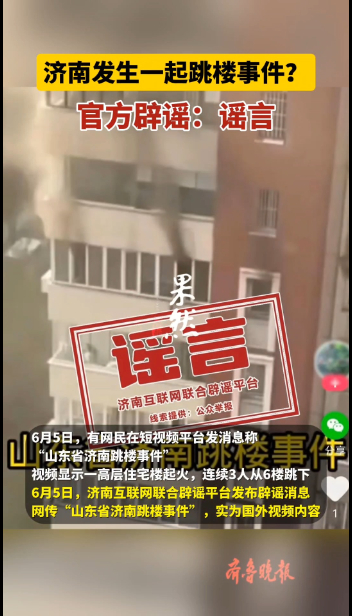 果然视频|济南发生一起跳楼事件?官方辟谣:假的