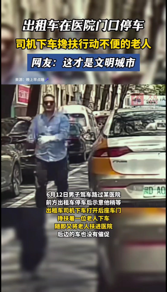 微视频|出租车在医院门口停车 司机下车搀扶行动不便的老人