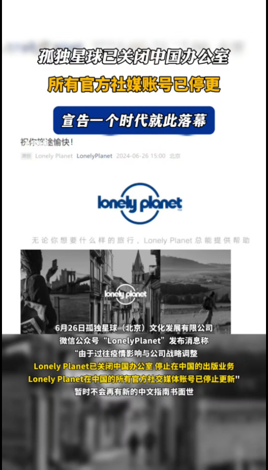 微视频 | 孤独星球:已关闭中国办公室,所有官方社媒账号已停更