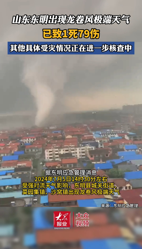 微视频 | 山东东明出现龙卷风极端天气,致1死79伤