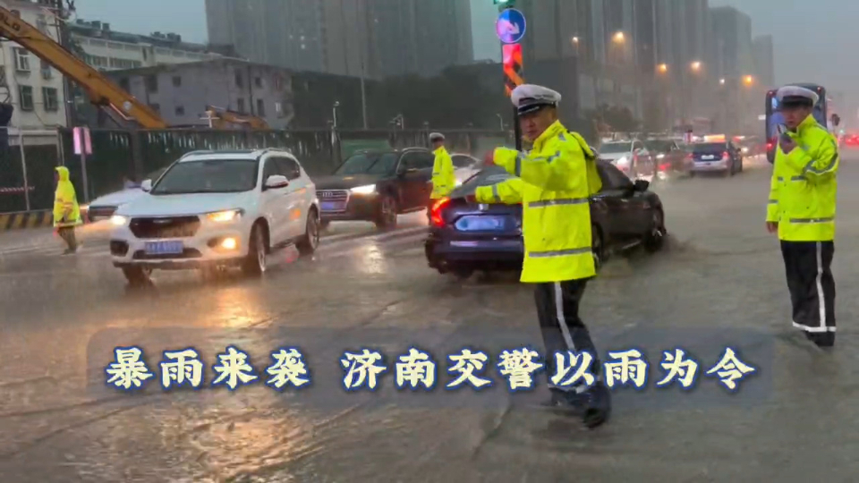 致敬雨中守护者|暴雨来袭,济南交警坚守岗位