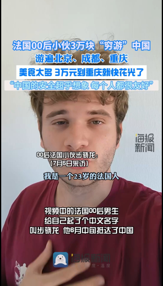 法国小伙3万元“穷游”中国:美食太多钱快花光了