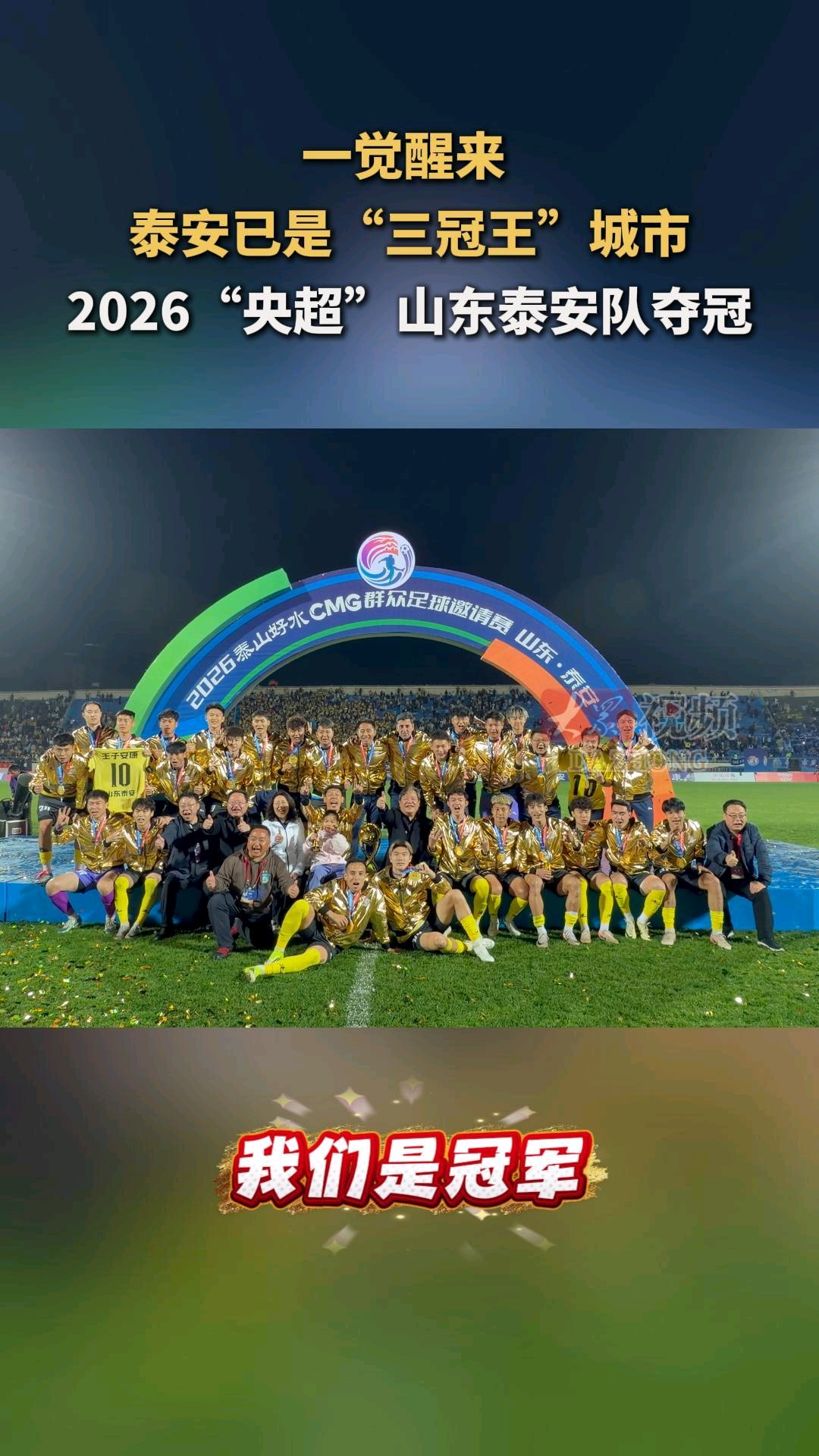 一觉醒来,泰安已是“三冠王”城市!2026“央超”山东泰安队夺冠