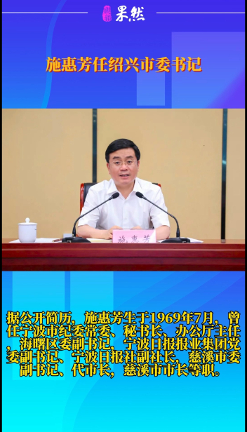 观政视频|施惠芳任绍兴市委书记