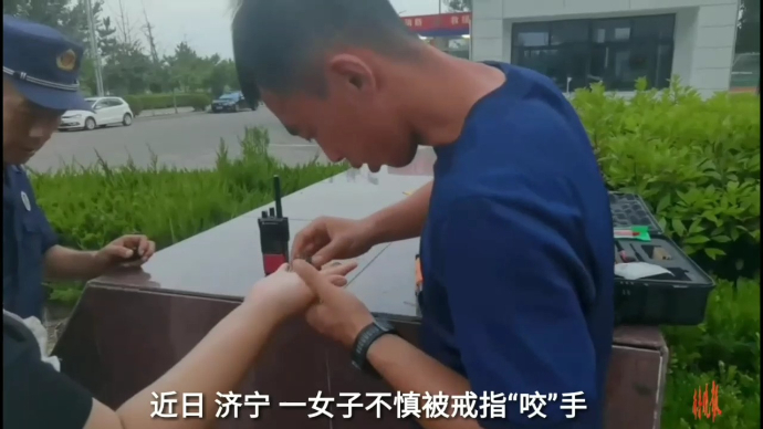果然视频|一女子被戒指“咬”手,消防员耐心破拆