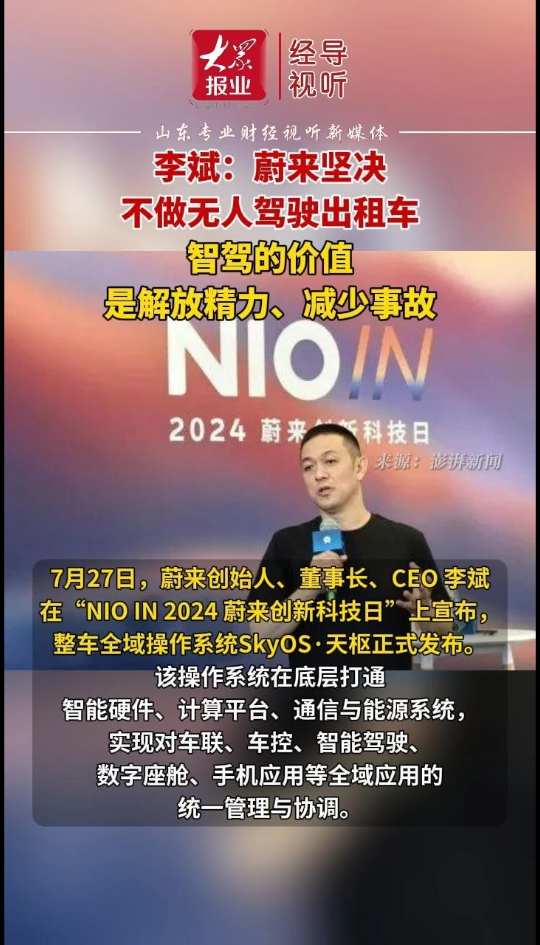 李斌:蔚来坚决不做无人驾驶出租车