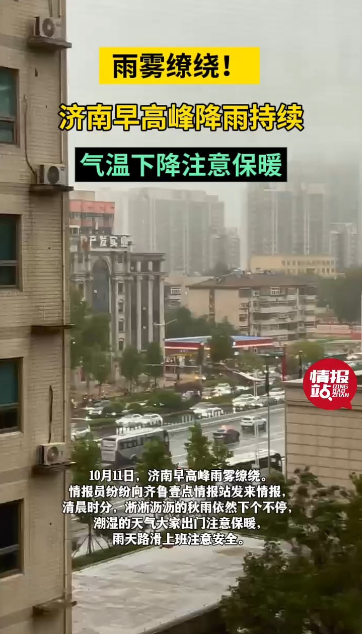 天气情报站|雨雾缭绕!济南早高峰降雨持续,气温下降注意保暖