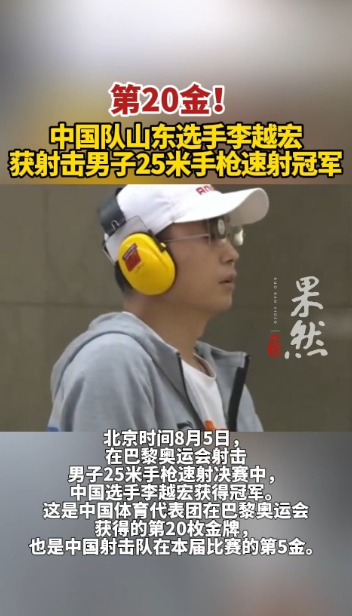 果然视频|山东第3金!李越宏获射击男子25米手枪速射金牌