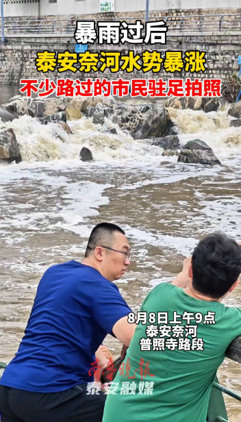 果然视频丨暴雨后,泰安奈河水势暴涨,不少路过的市民驻足拍照