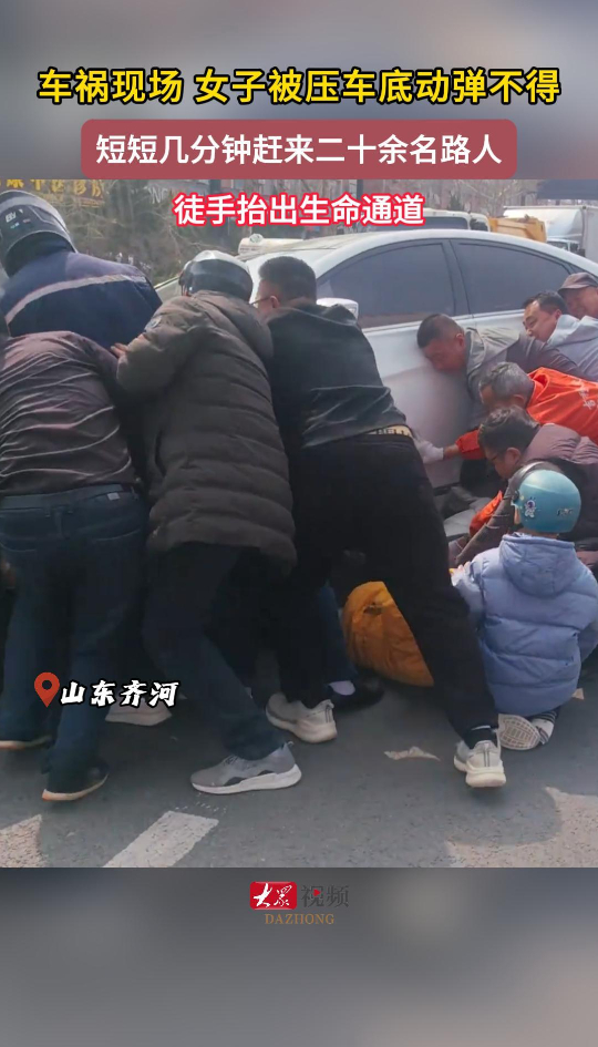 为齐河街头这群人点赞!女子被卷入车底动弹不得,路人徒手抬车救人