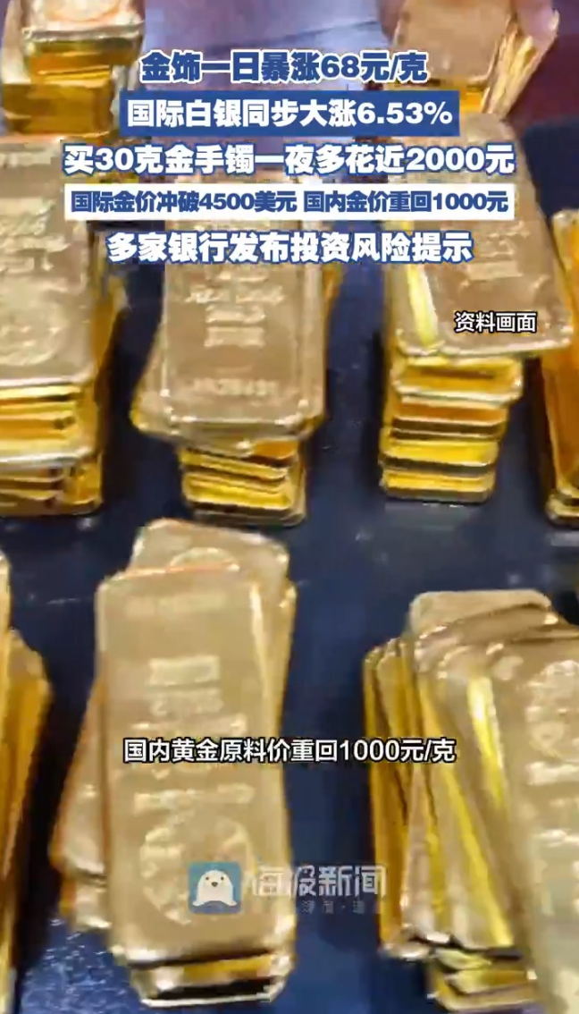 主播说丨金饰一日暴涨68元/克,买30克金手镯一夜多花近2000元