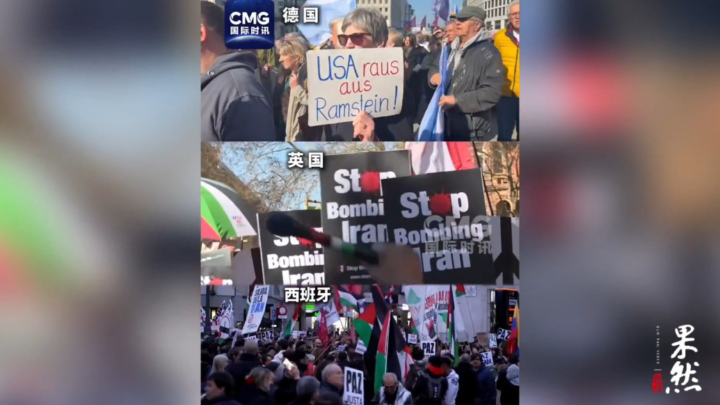 果然视频·看天下|欧洲多国民众走上街头,抗议美以对伊军事打击