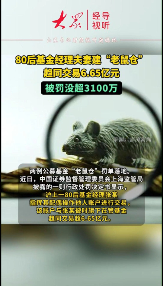 80后基金经理夫妻建“老鼠仓”,趋同交易6.65亿元,被罚没超3100万