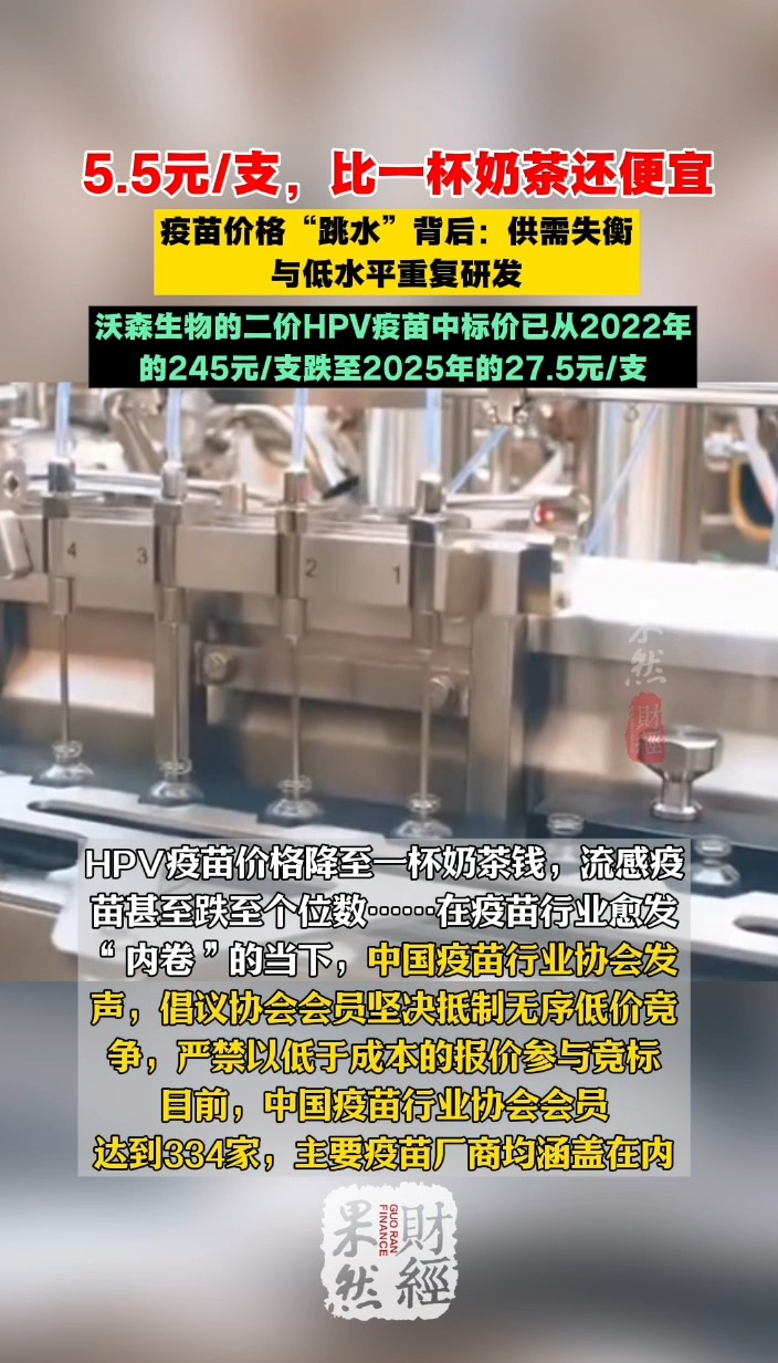 果然财经|5.5元/支,比一杯奶茶还便宜!疫苗价格“跳水”