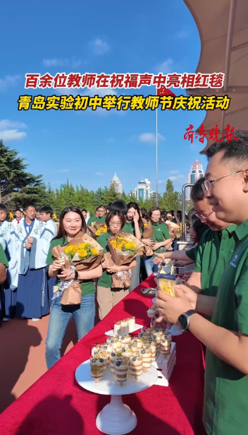 果然视频|全体教师亮相红毯!青岛实验初中举行教师节庆祝活动