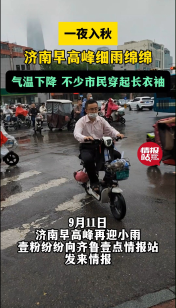 天气情报站|一夜入秋!济南早高峰细雨绵绵,不少市民穿上长衣裤