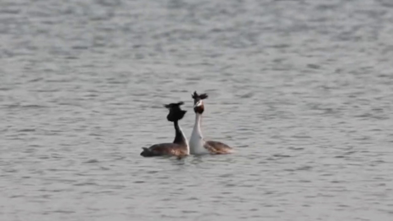 华山湖里凤头鸊鷉求偶先跳段迪斯科舞蹈
