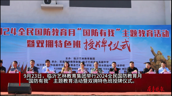 果然视频|临沂艺林教育集团举行国防教育月暨双拥特色班授牌活动