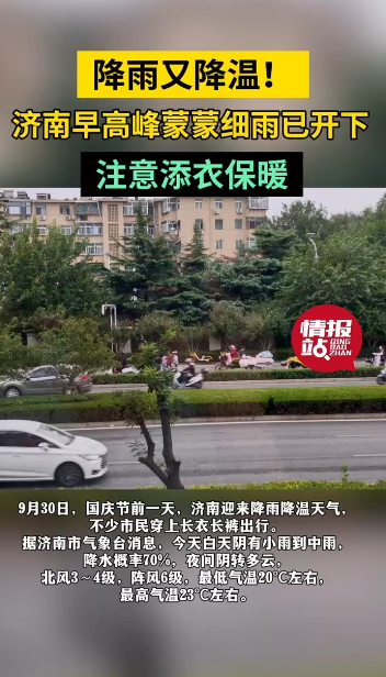 天气情报站|降雨又降温!济南早高峰蒙蒙细雨已开下,请及时添衣