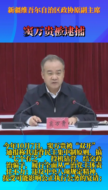 观政视频|新疆维吾尔自治区政协原副主席窦万贵被逮捕