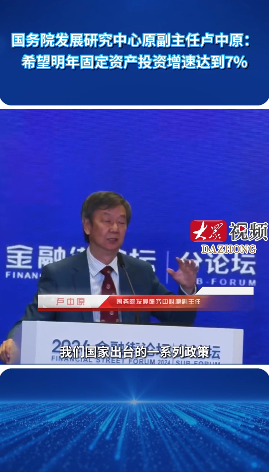 国务院发展研究中心原副主任卢中原:希望明年固定资产投资增速达到7%