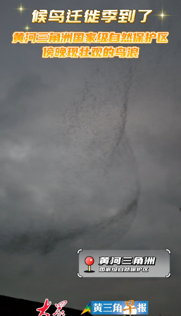 候鸟迁徙季到了,黄河三角洲国家级自然保护区傍晚现壮观的鸟浪