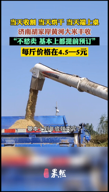 果然视频|济南黄河大米丰收,当天收割当天端上桌,村民称不愁卖