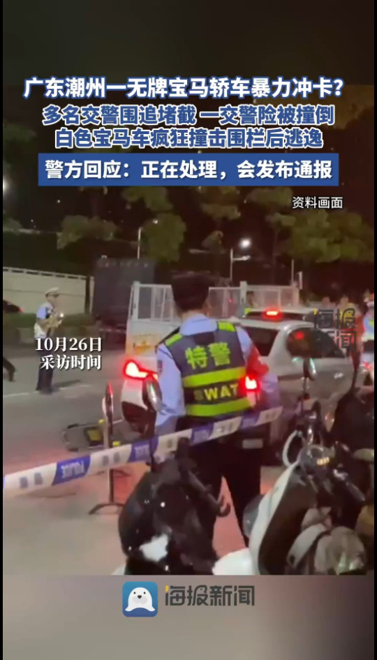 广东潮州一宝马车暴力冲卡,交警围追堵截?警方回应