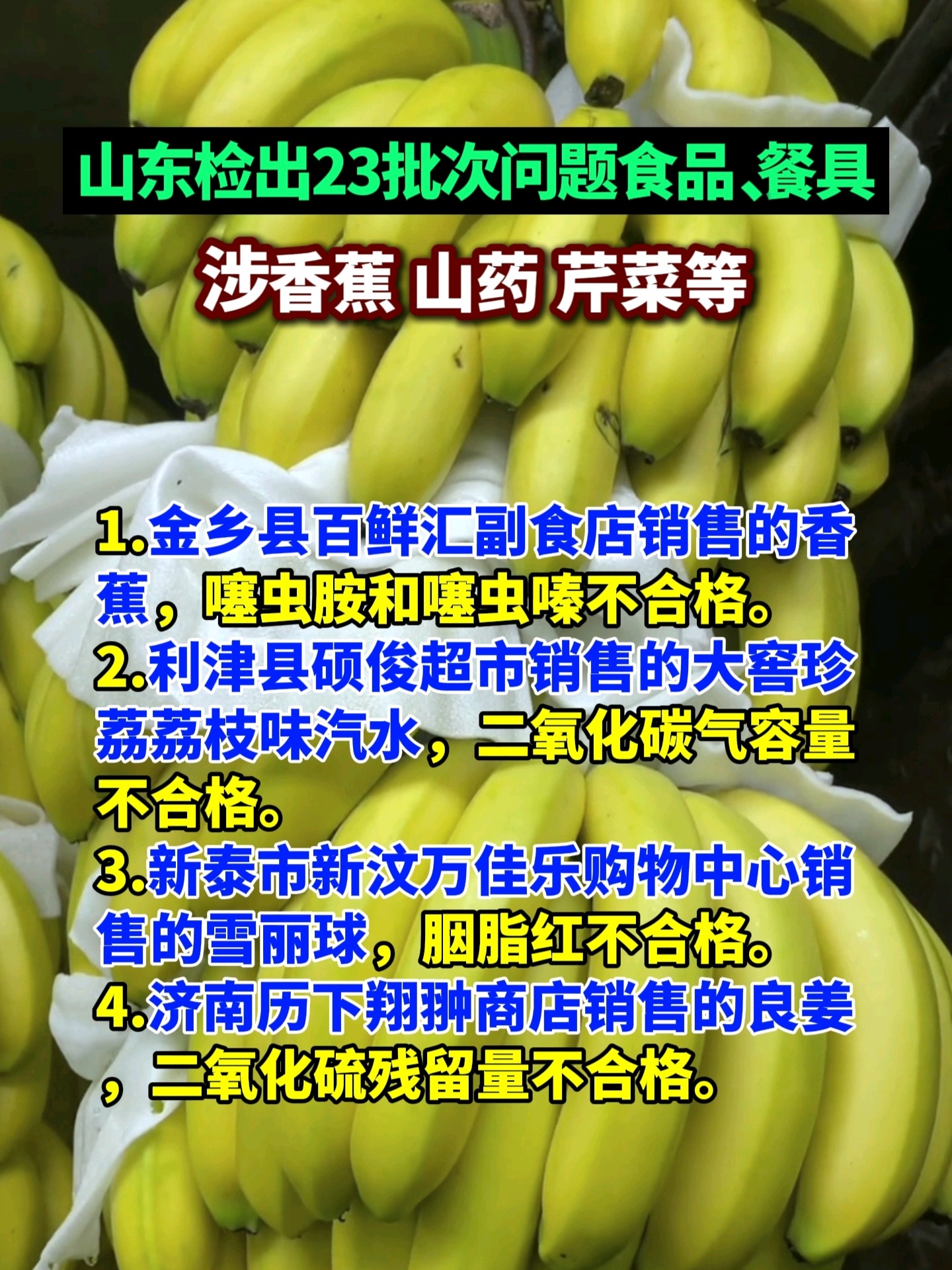 山东检出23批次问题食品、餐具,涉香蕉、山药、芹菜等