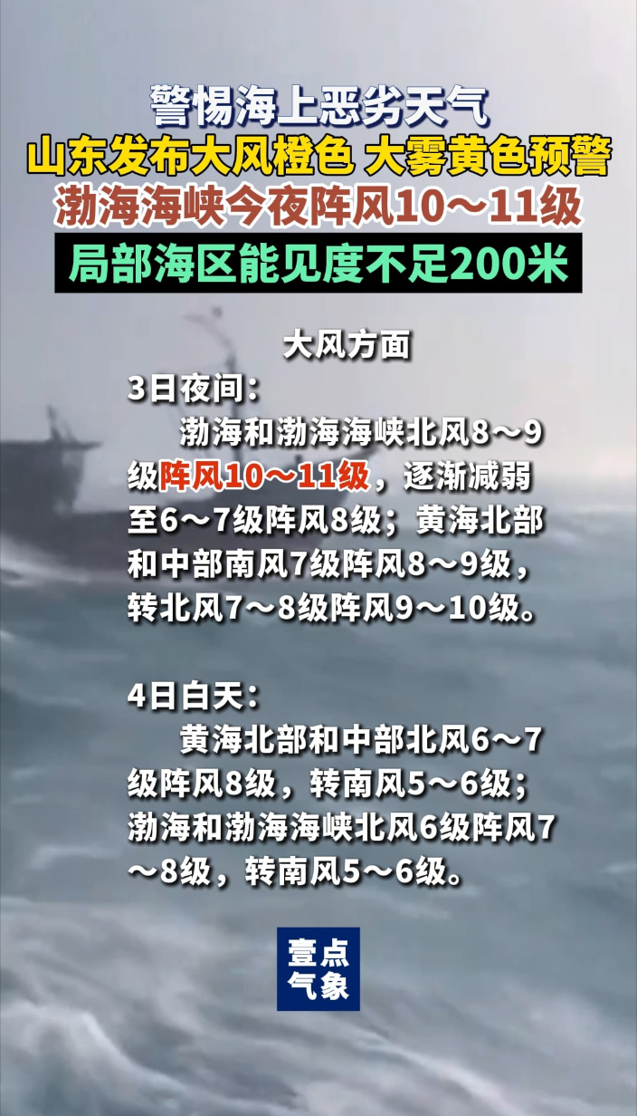 壹点气象|山东继续发布海上预警,部分海区能见度不足200米