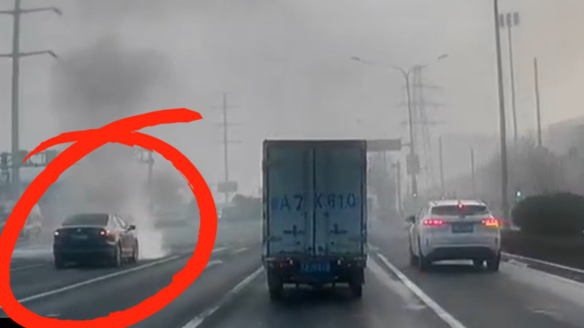 早高峰私家车冒起浓烟,公交司机和乘客拿起灭火器就冲了上去