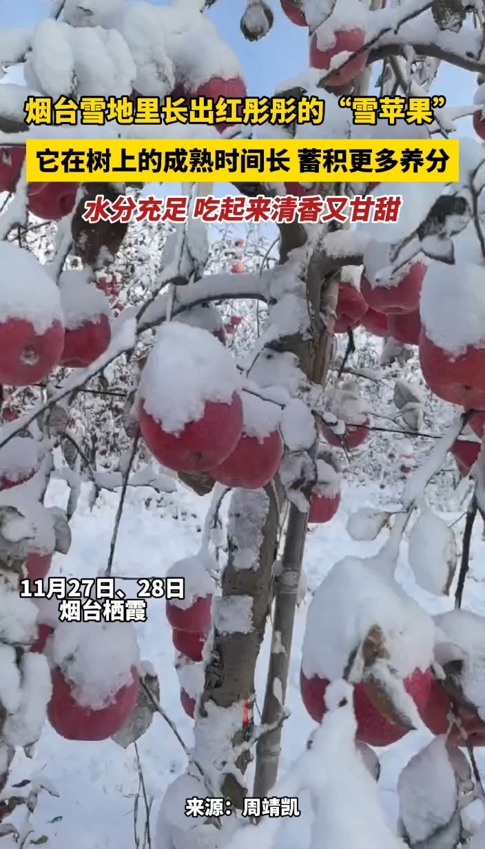 果然视频|烟台雪地里长出红彤彤的“雪苹果”,吃起来清香又甘甜