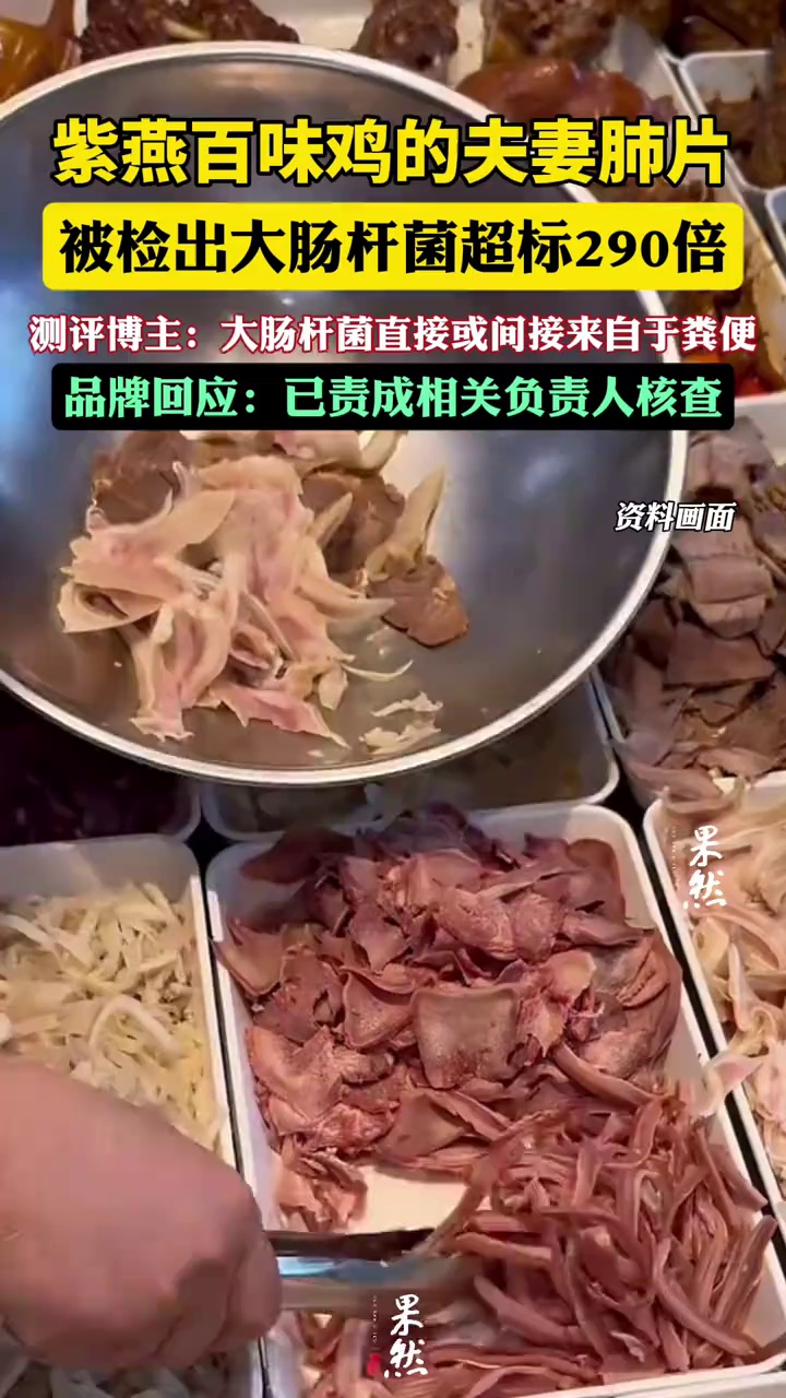 紫燕百味鸡的夫妻肺片被检出大肠杆菌超标290倍,品牌方回应。